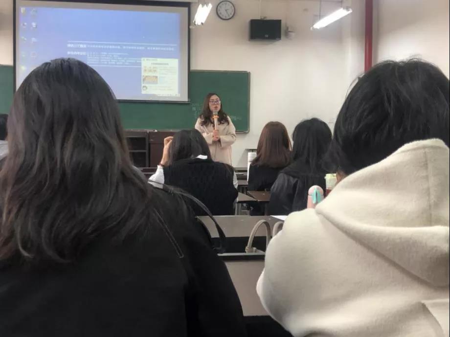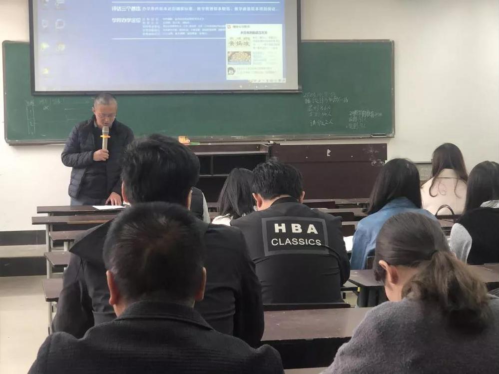 第二个环节教学主任勾英老师介绍了关于本科评估工作的进展及任务征询,针对现阶段本科评估工作的进展发布了任务征询。并对上学期期末的社会实践记录表提出指导意见,提醒负责老师及时联系员工,针对实践表中可能存在的各类问题进行解答。