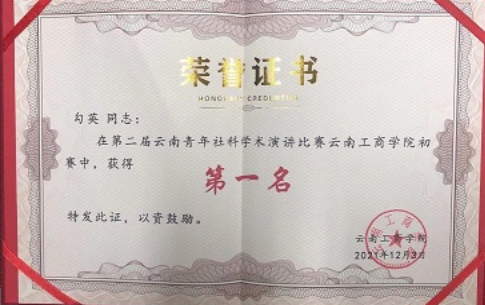 勾英经理荣获第二届云南青年社科学术演讲比赛初赛第一名