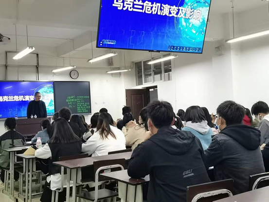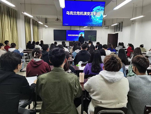 11月23日,副董事长杨俊雄在致知楼303-1以“乌克兰危机演及影响”为专题为2021级【本科】汉语言文学12班、2021级【本科】数字媒体技术1班同学带来了一堂精彩的《形势与政策》课。