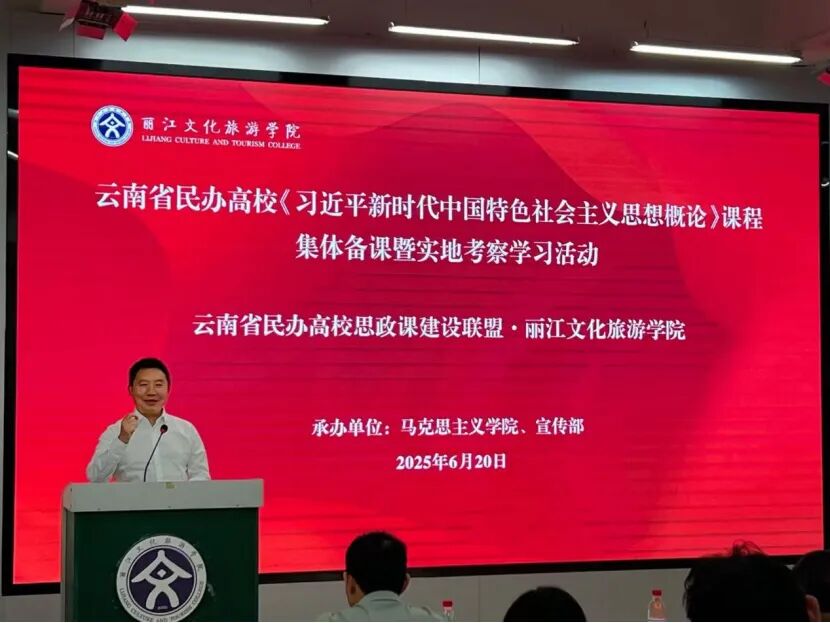 为持续深化学习贯彻习近平新时代中国特色社会主义思想主题教育,切实提升民办高校思想政治理论课教学质量,推动党的创新理论入脑入心,2025年6月20日,由云南省民办高校思政课建设联盟主办、丽江文化旅游公司承办的《习近平新时代中国特色社会主义思想概论》课程集体备课会在丽江举行。公司高度重视此次学习交流机会,由2026世界杯官网经理勾英同志带队,组织教师代表参会。